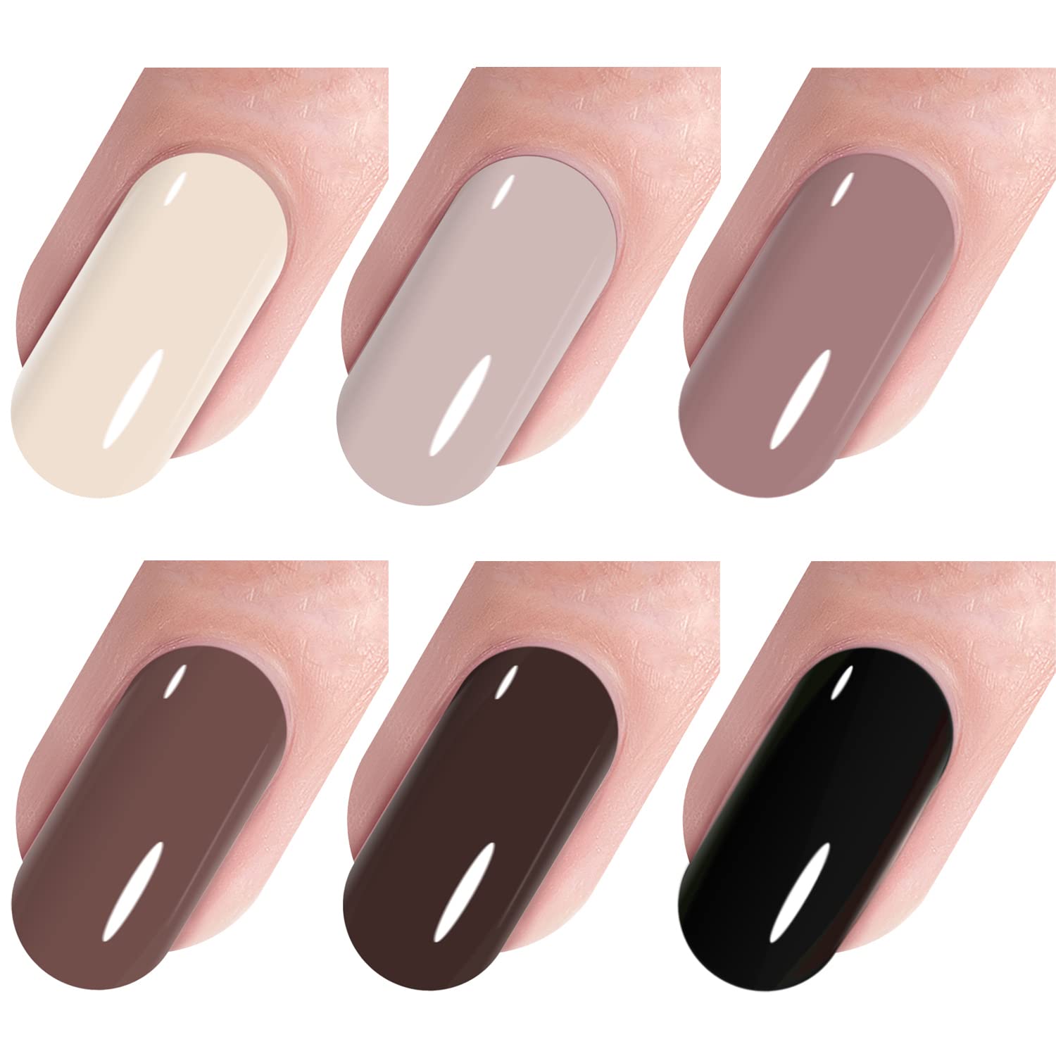 - Nice Gel Colors Collection: NATURAL Nude and Brown suitable for any occassions, long wearing fot 21 days, non smell, no harm to skin, mirror shine finish.