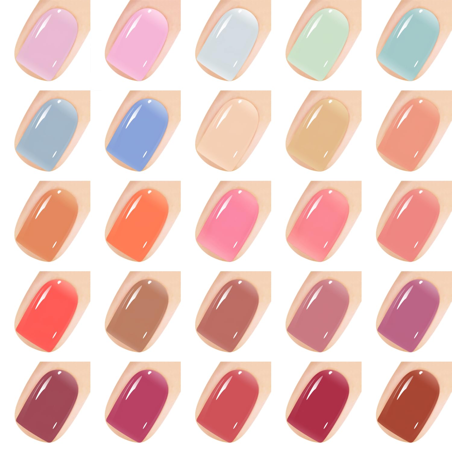 - Nice Gel Colors Collection: Classic colors suitable for any occassions, long wearing fot 21 days, non smell, no harm to skin, mirror shine finish.