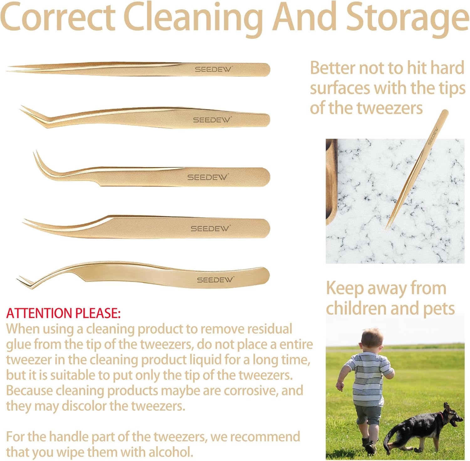 - â¤ď¸ăComfortable And CleanăSEEDEW tweezers are ergonomically designed, and the comfortable handle is suitable for long-time holding and using. Eyelash tweezers can help you reduce contact with your clients' skin and eyes, cleaner and safer.