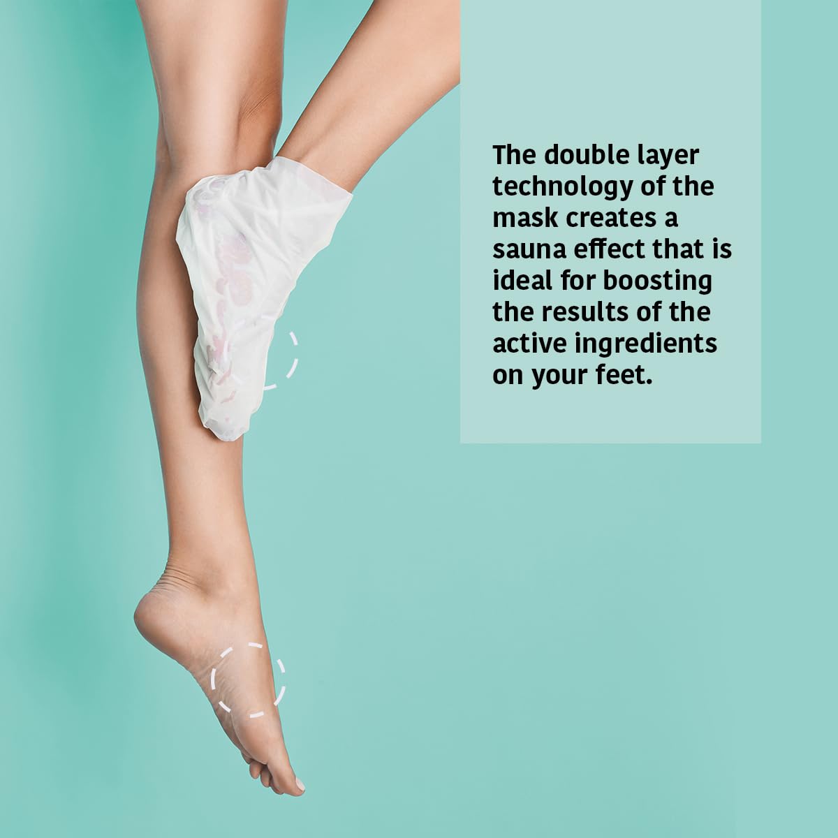 - FORMULA WITH A SAUNA EFFECT: The socks are made with a double layer (outer plastic layer and inner tissue layer) that creates a sauna effect, thanks to the body's own heat. It allows for better serum penetration